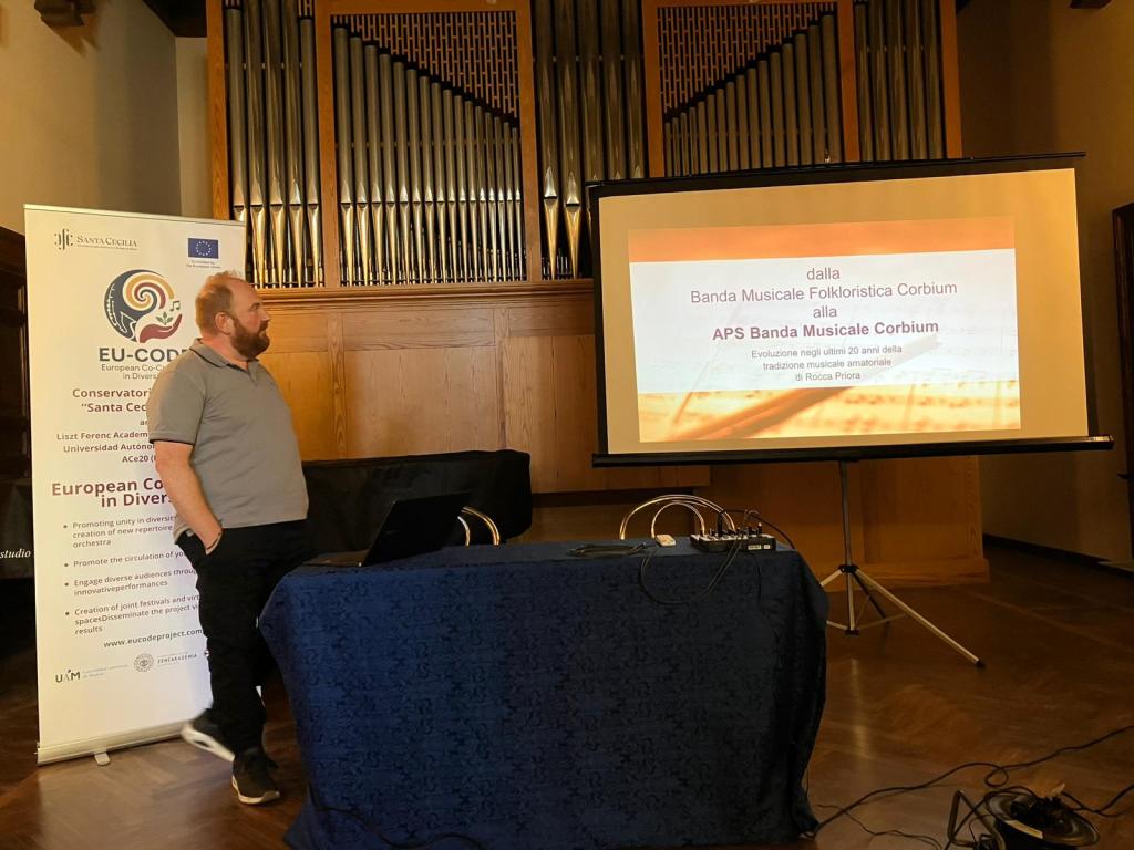 Among the key figures of the initiative, the contributions of Antonio Pelizza, a music scholar at the Santa Cecilia Conservatory, and Gianfilippo Pocorobba, professor of Instrumentation and Wind Orchestra Conducting at the same institution, and also the project coordinator, are noteworthy. Both were actively involved in designing and leading the educational and artistic sessions.